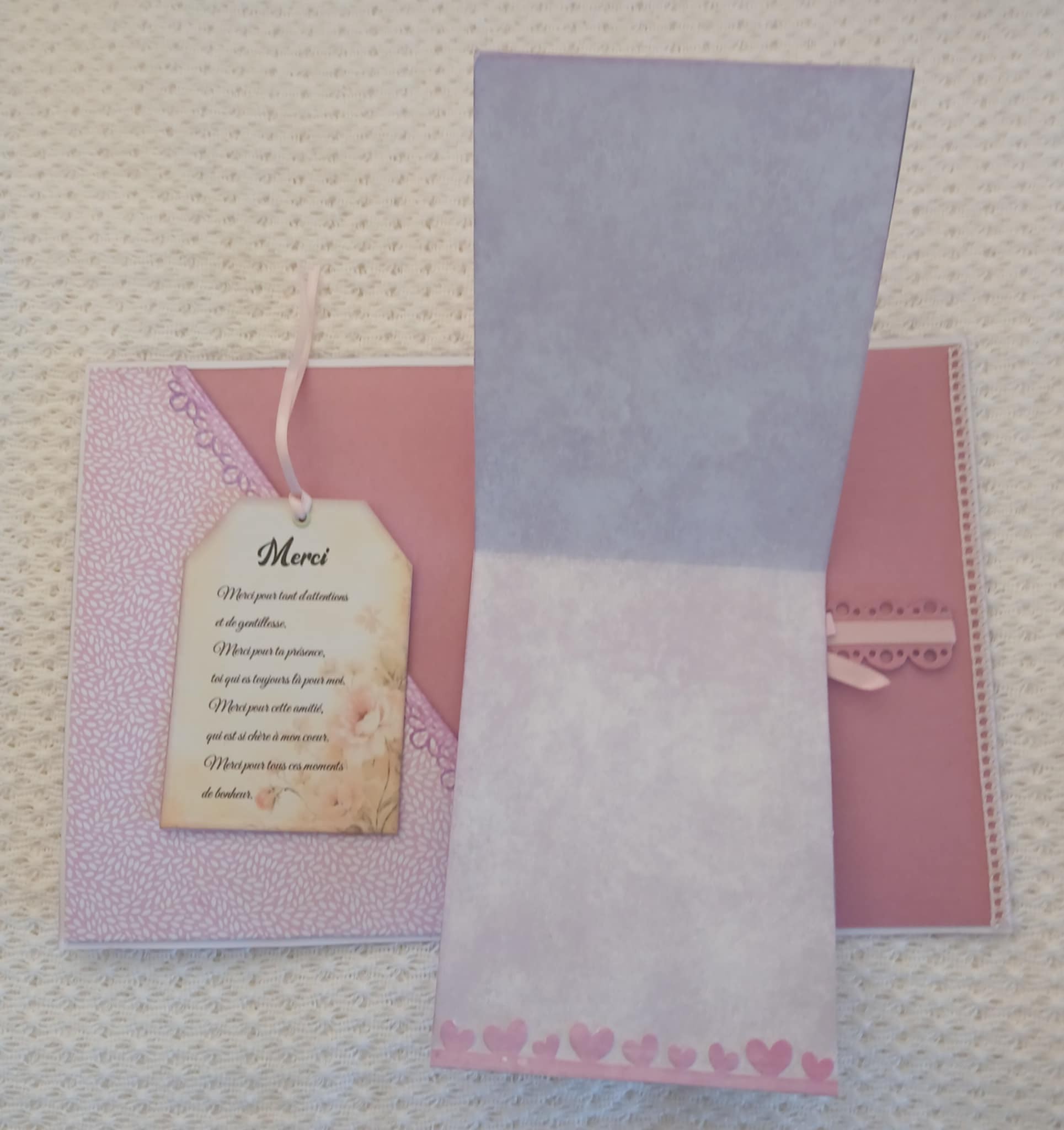 Le tag « Merci » glissé dans le décor permet d’exprimer une gratitude sincère… ou peut être retiré pour transformer la carte en message d’amitié, d’anniversaire ou de célébration.
