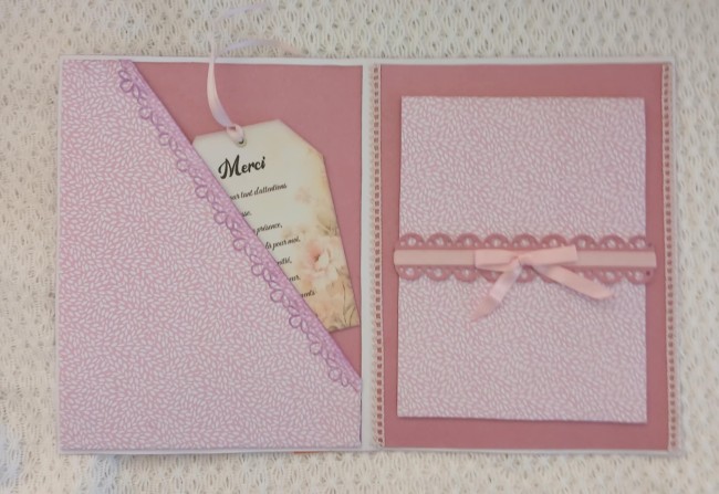 Tag amovible : message « Merci » imprimé sur un encart décoré, à glisser ou retirer selon l’occasion