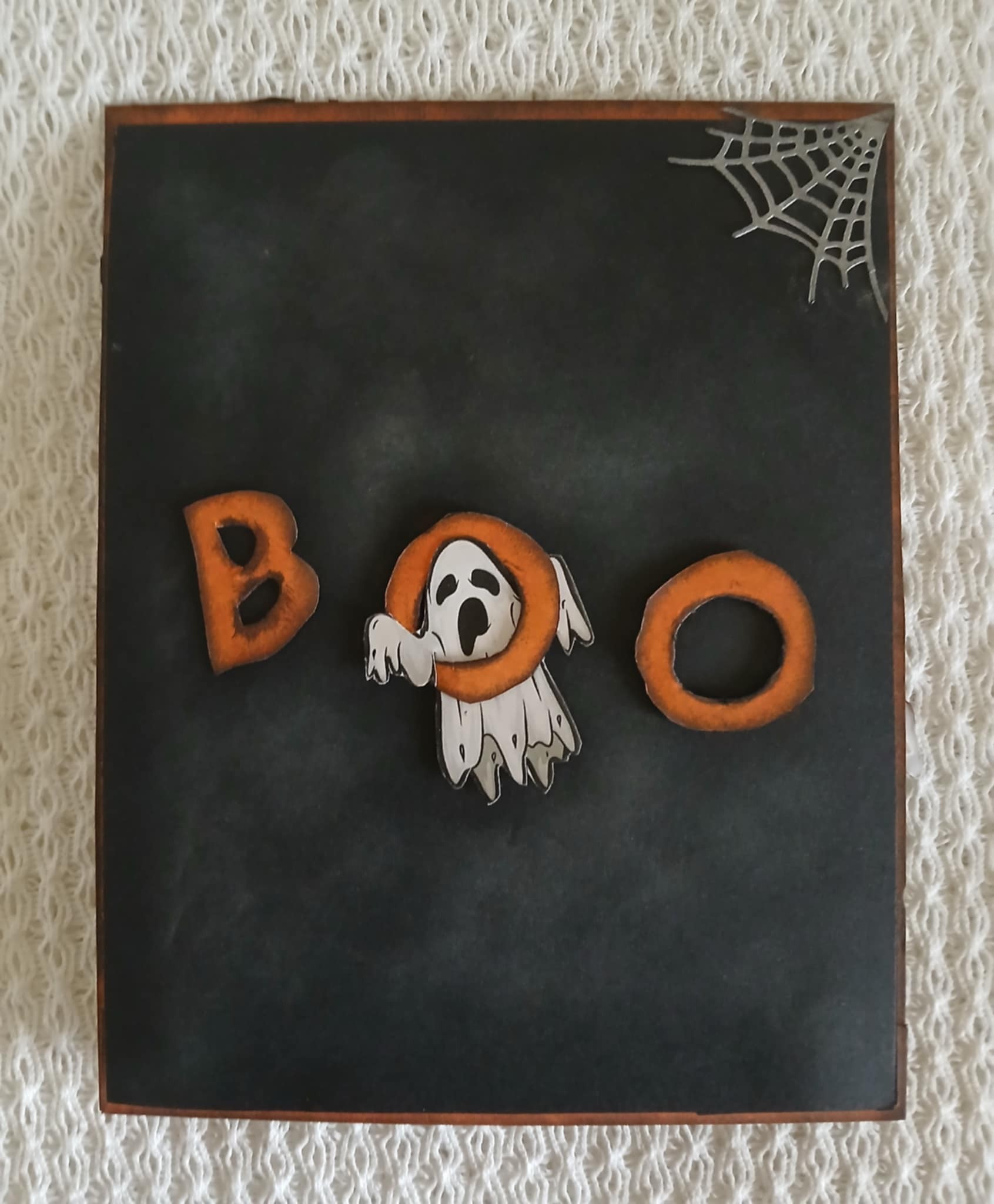 Matériaux : papiers texturés, éléments décoratifs Halloween