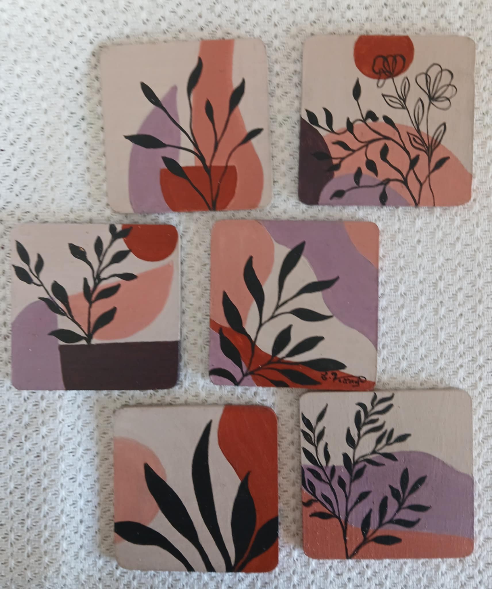 👉 20 € l’ensemble (6 dessous de verres + boîtier) + FDP