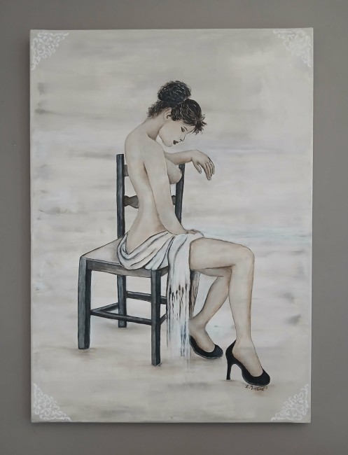 Rosie, femme assise drapée demie nue - (Dim 50*60 cm)