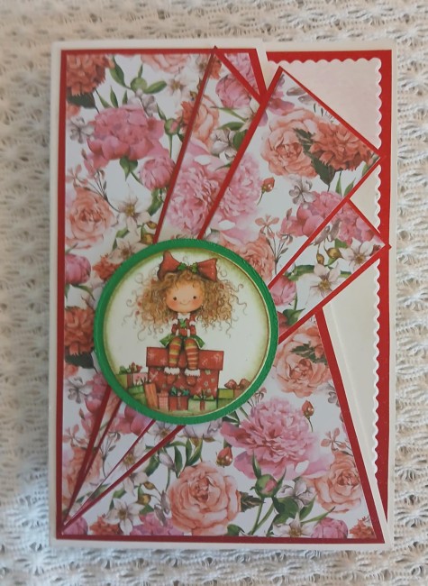 Bella carte "Petite fille coeur de roses" motif petites fleurs ton bleu